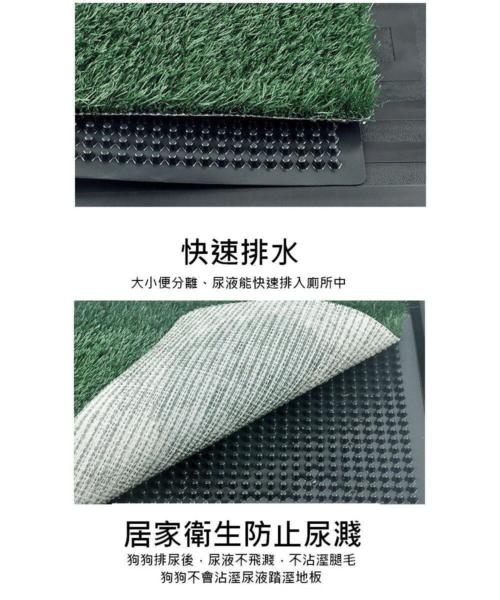 一旦毛孩在草墊上完成如廁,請立即給予零食獎勵或熱烈誇獎!我們的「三層導流設計」會瞬間將尿液排入底層儲尿盤,保持表面乾爽,不會讓毛孩踩得濕答答,這對愛乾淨的毛孩來說是最好的正向回饋。