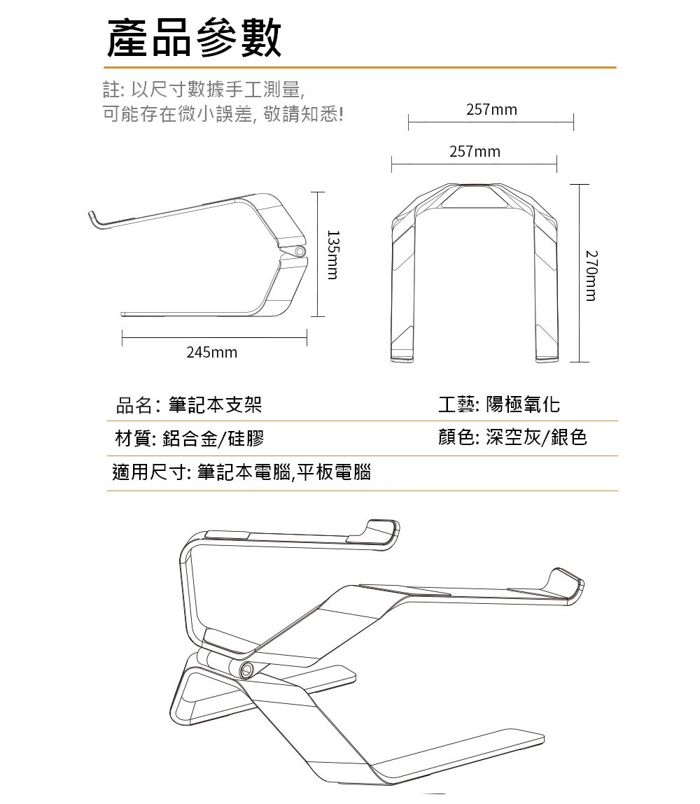 科技銀 + 極簡北歐風 飛梭筆記本電腦支架