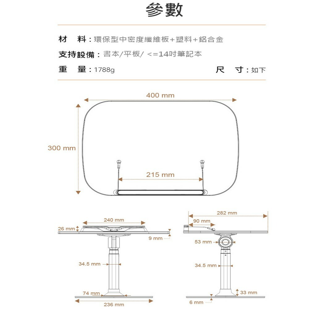 三節升降調節360度可旋轉